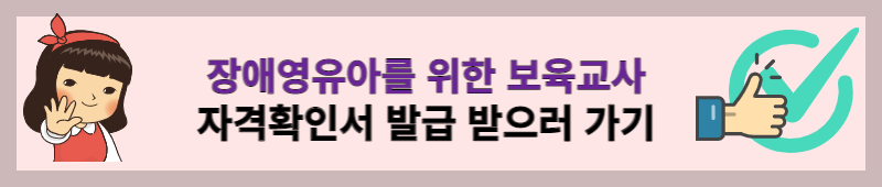 이렇게 다양한 기회가 있는 장애영유아를 위한 보육교사 자격 취득하는 방법을 알아보았습니다. 보육교사로 일하고 계시거나 장애영유아를 위한 보육교사 자격 취득에 관심 있으신 분이시라면 꼭 도전해 보시길 추천드립니다.