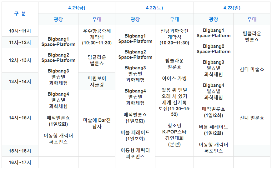 | 2023 대한민국 과학축제 프로그램 안내 및 이벤트 내용 (0) | 2023.04.24 |