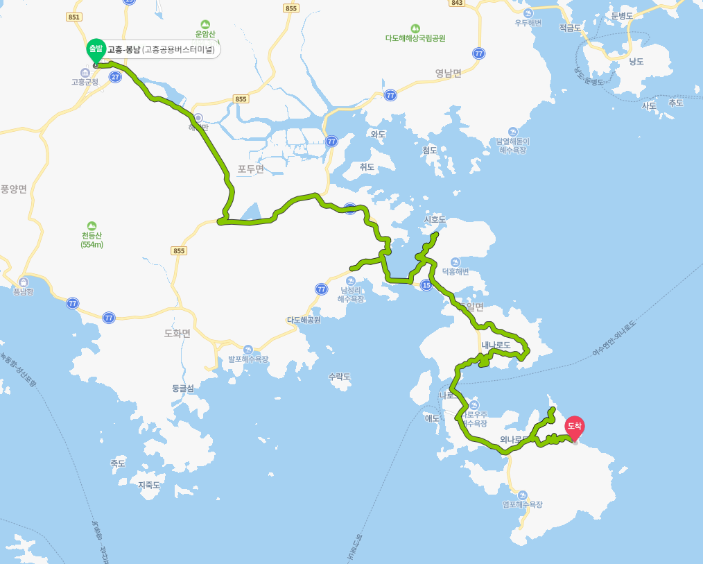 ▶ 빠른 길 정보(고흥버스터미널 출발)